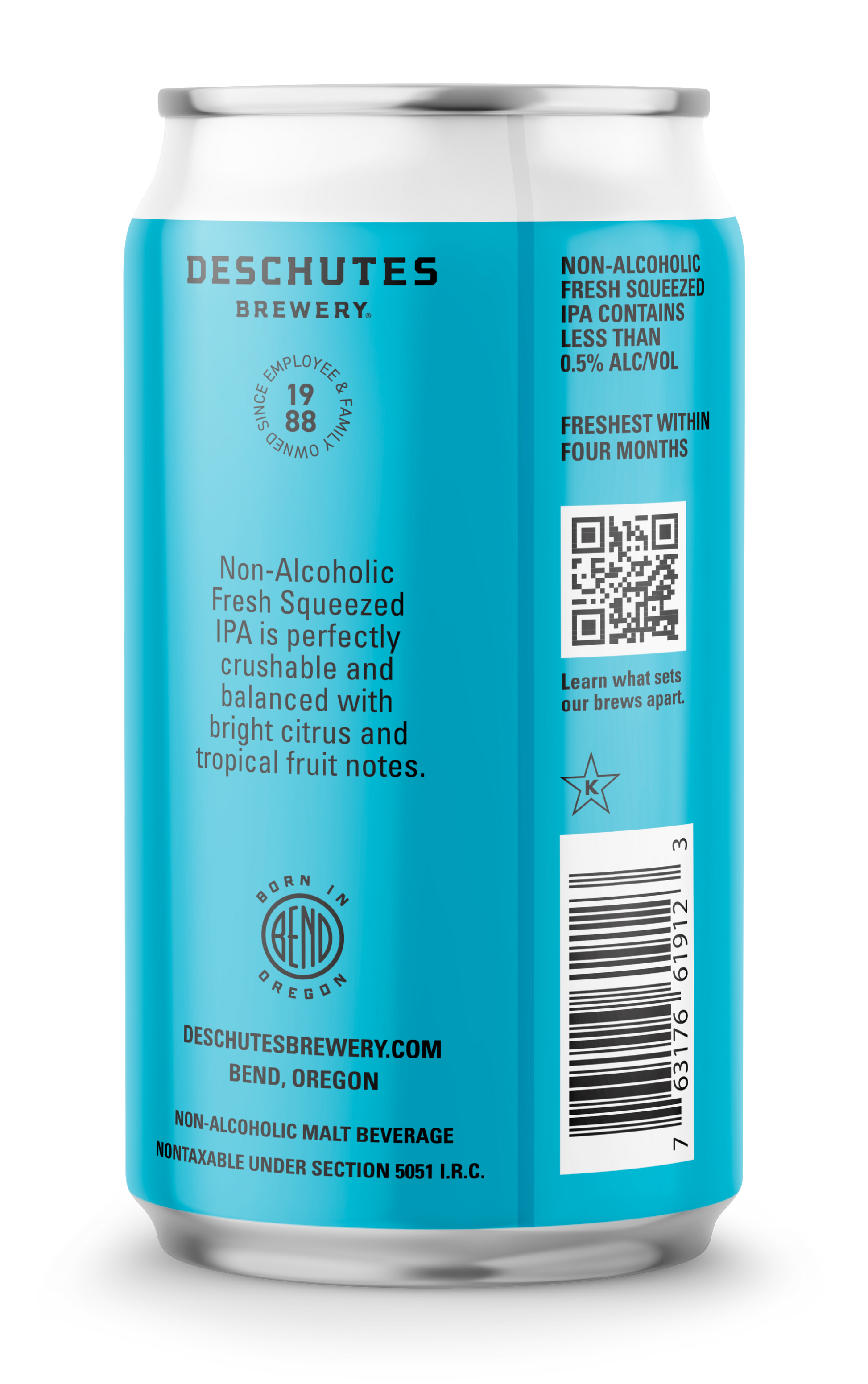 Non-Alcoholic Fresh Squeezed IPA is perfectly crushable and balanced with bright citrus and tropical fruit notes.