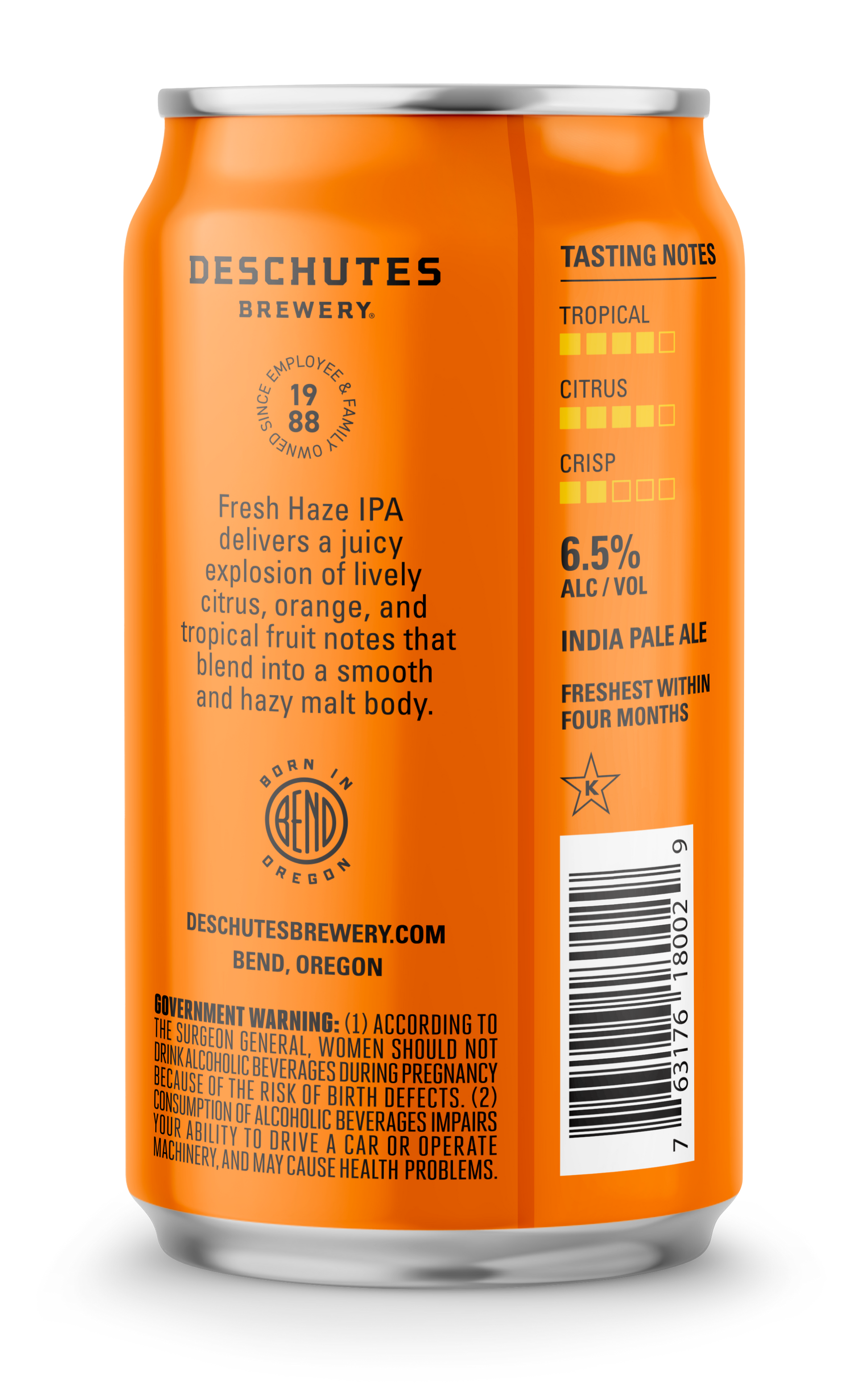 Fresh Haze IPA delivers a juicy explosion of lively citrus, orange, and tropical fruit notes that blend into a smooth and hazy malt body. Look for our Non-Alc version of Fresh Haze IPA, too!