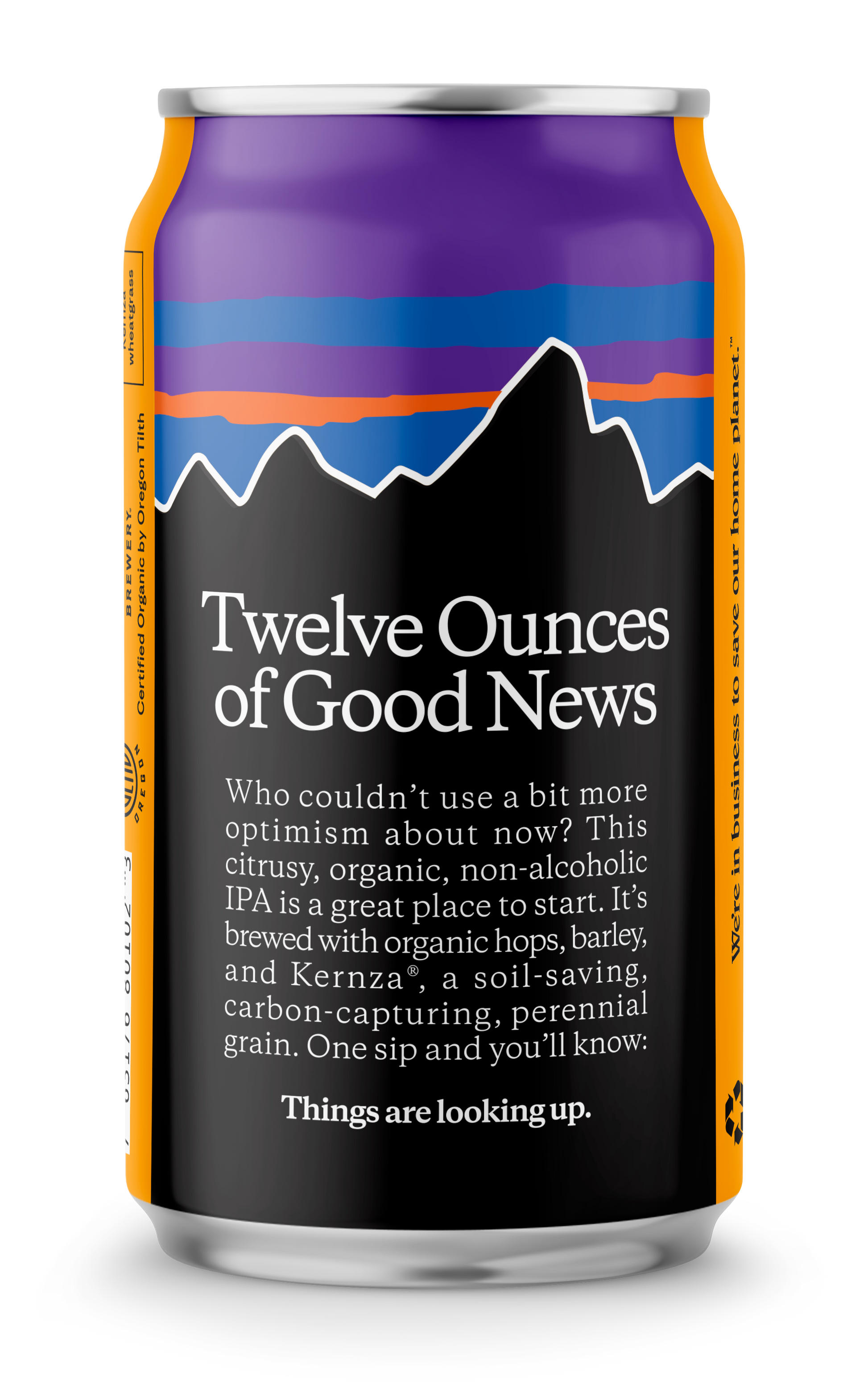 Who couldn't use a bit more optimism right now? This citrusy, organic, non-alcoholic IPA is a great place to start. It's brewed with organic hops, barley and Kernza®, a soil-saving, carbon-capturing, perennial grain. One sip and you'll know: things are looking up!